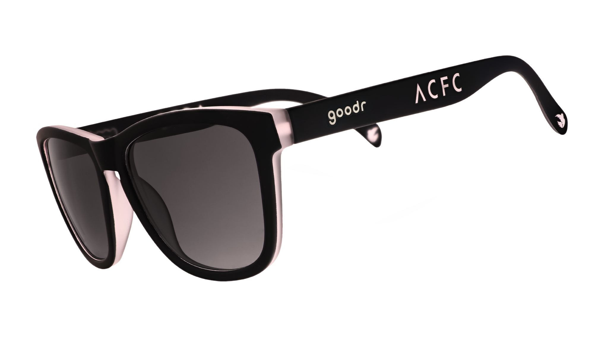 Angel City FC fans, grab your limited-edition sunnies and soar to triumph!!! These black and sol rosa sunglasses with a sleek translucent finish feature polarized gradient lenses so you can keep your eyes on your team and overpriced nachos.