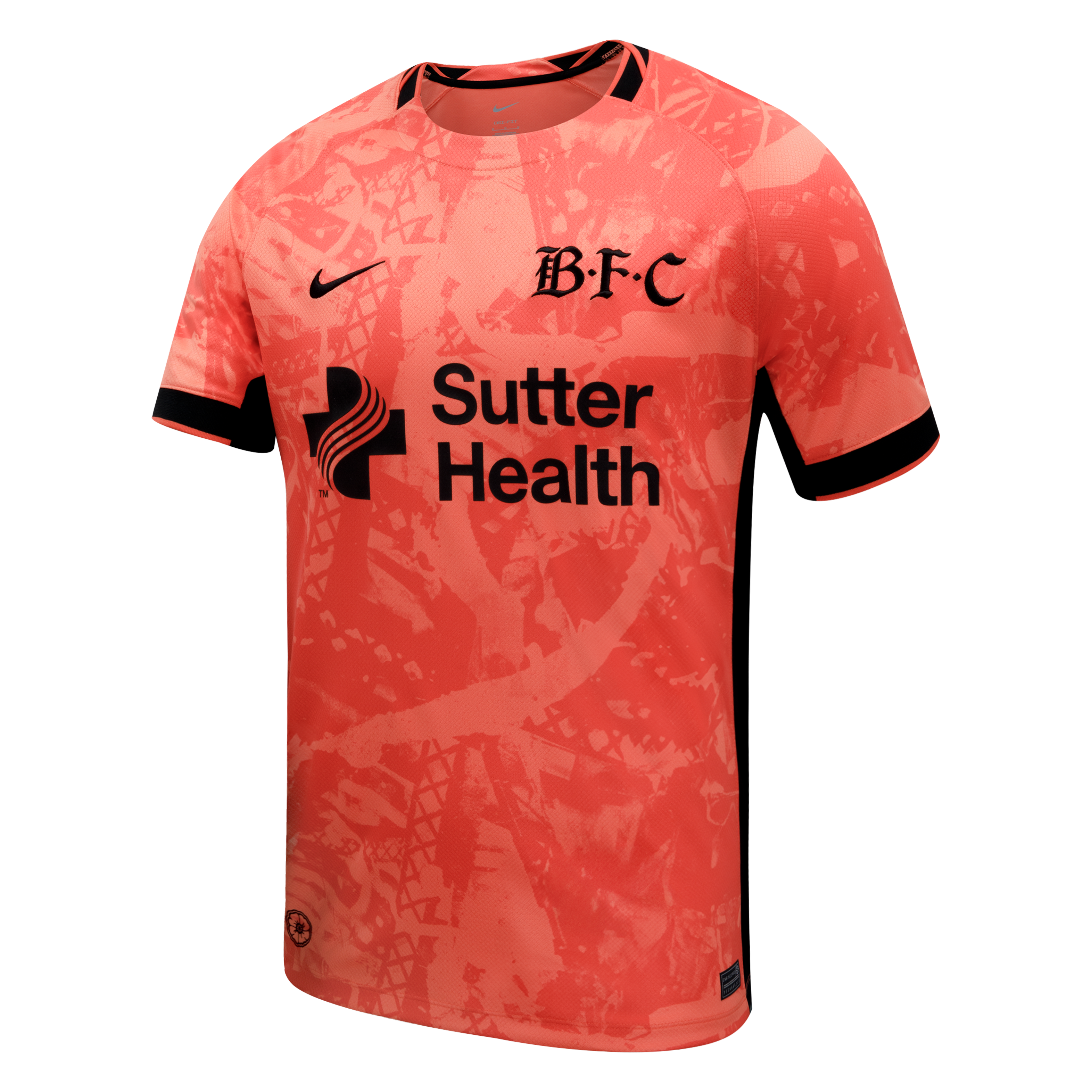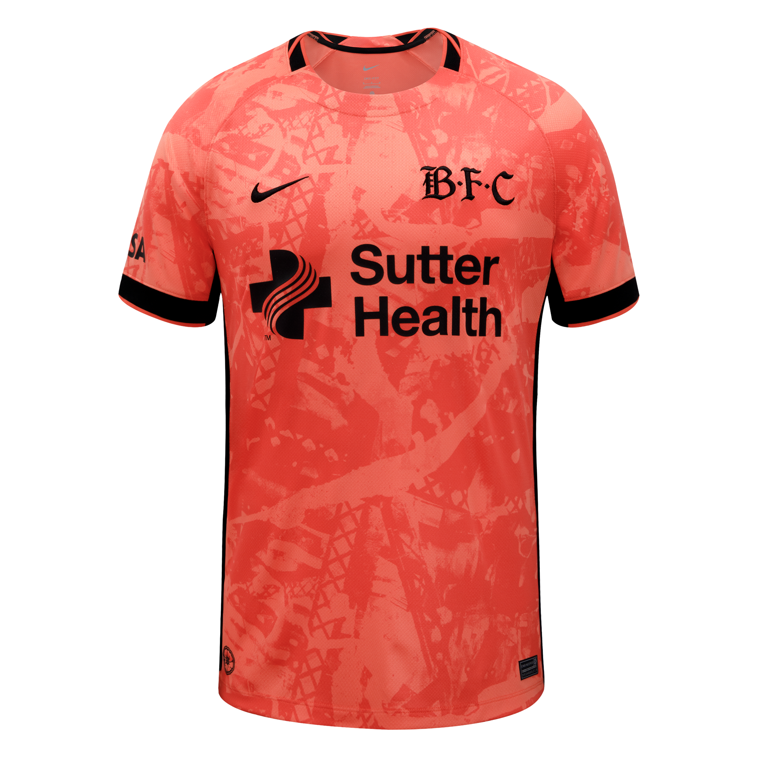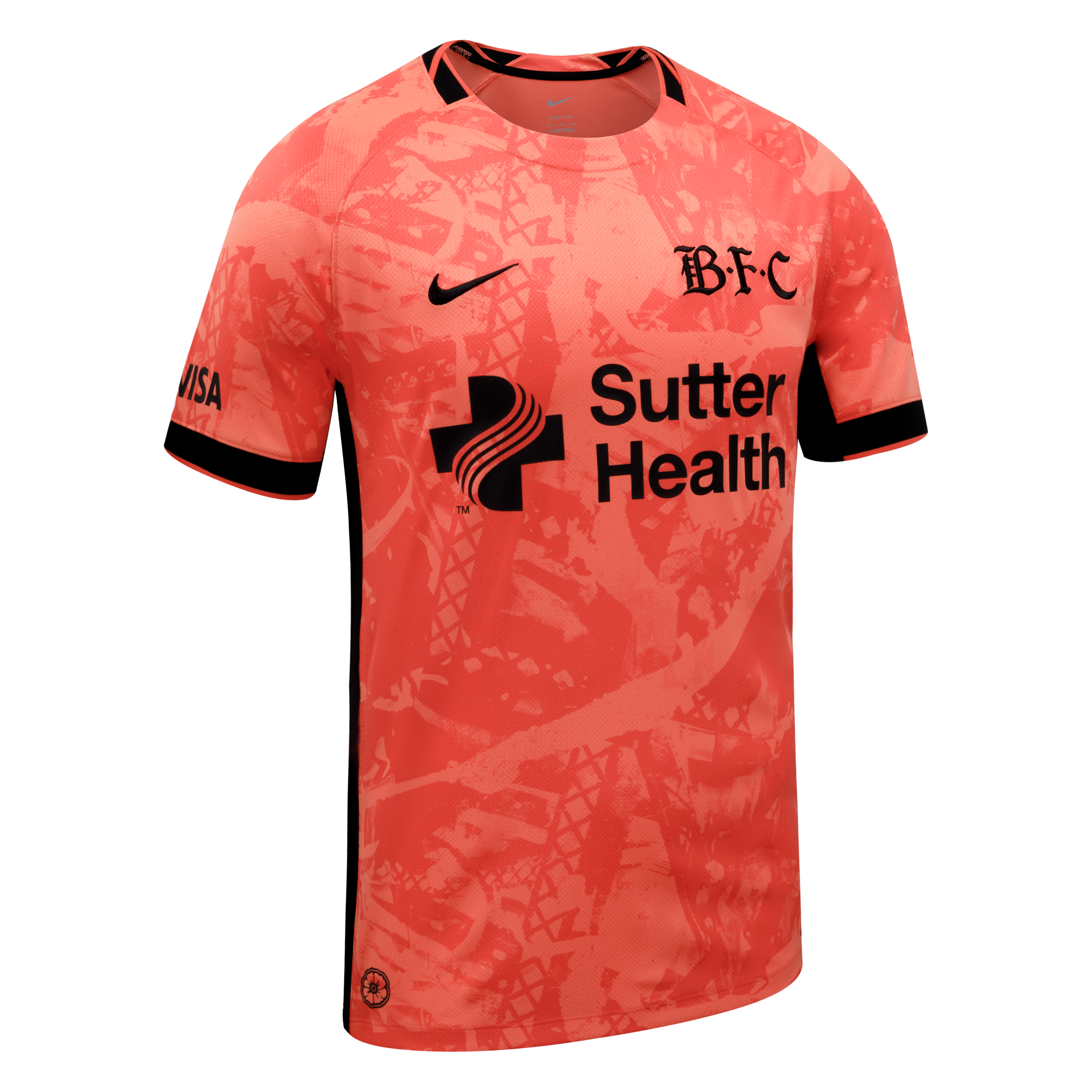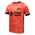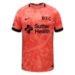 The colorway leans into Bay FC's poppy color and is the first appearance of this color as a primary kit application in Bay FC history. The poppy color, as it appears on the kit, symbolizes the beauty and energy of the Bay Area, while the black accents represent our strength and boldness.