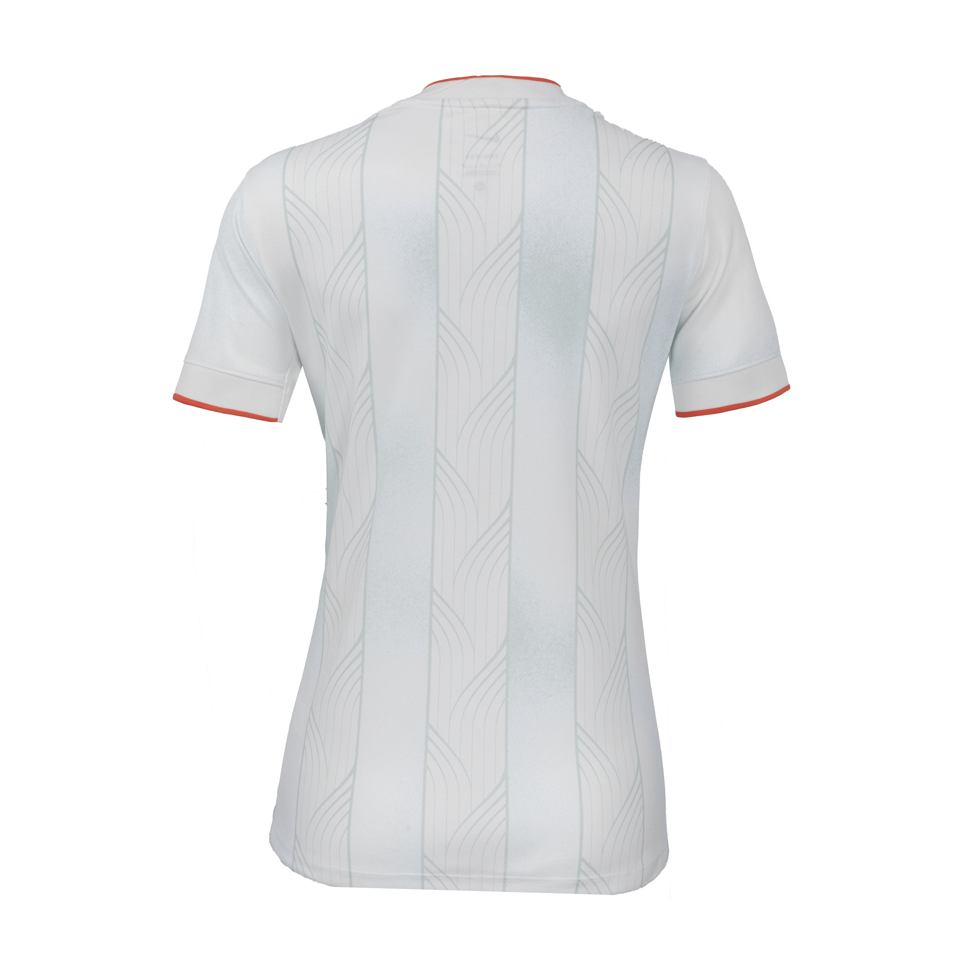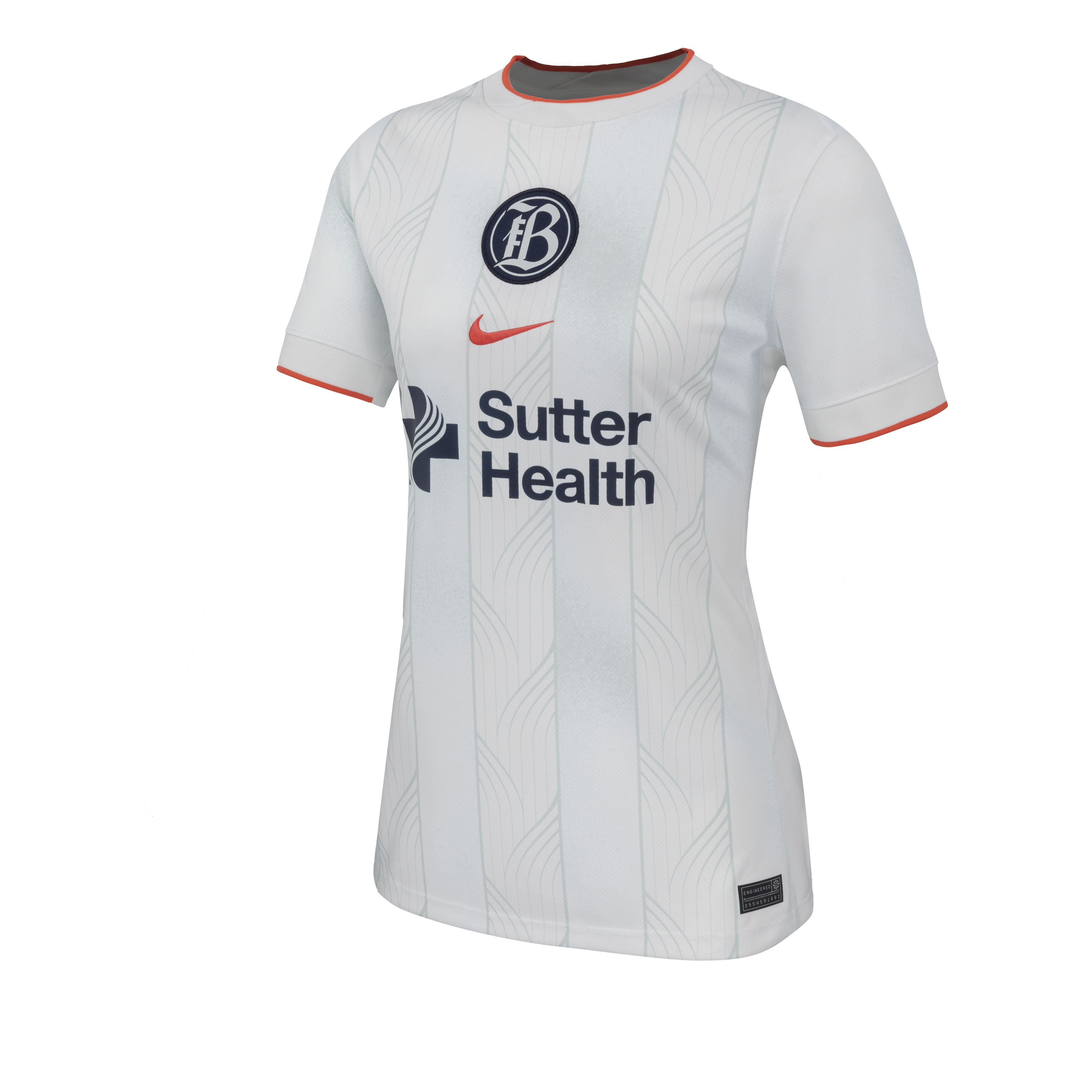 The Bay FC secondary kit print is inspired by the 3 different areas of the Bay through 3 bold linear graphics, the curved lines speak into the 9 counties intertwining and coming together to create the Bay