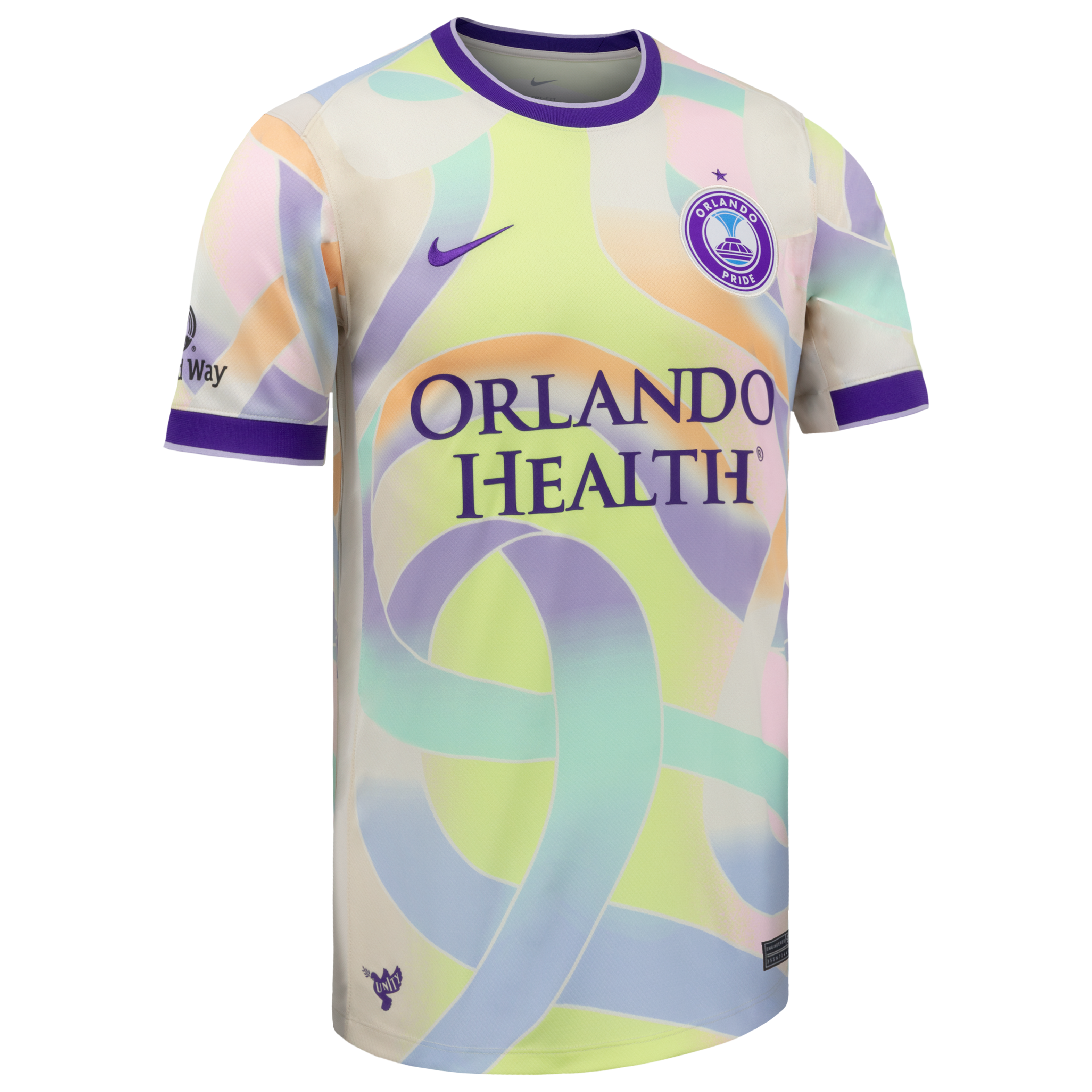 The kit features interwoven ribbons of color coming together, representing the unbreakable bond and collective spirit of the Orlando community.