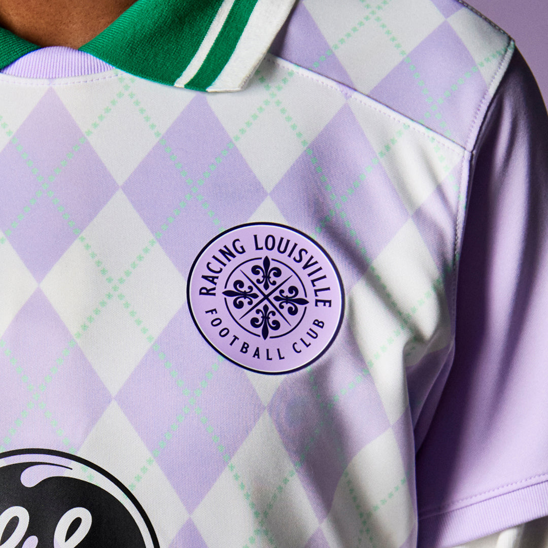 Get in gear with this 2024 Racing Louisville FC Primary The Winner's Circle Replica Jersey! Celebrating Louisville's cultural connection to horse racing, Racing Louisville FC's new primary kit serves as a good reminder that size does not define strength. Similar to jockeys, players from RLFC are always prepared to set the pace. Inspired by traditional horse racing silks, the jersey features a lavender diamond pattern with an argyle mint overlay. The fleur-de-lis on RLFC's crest is a nod to Louisville's French heritage and was used as a design element in both the argyle on the uniform and the team's outer pride symbol.