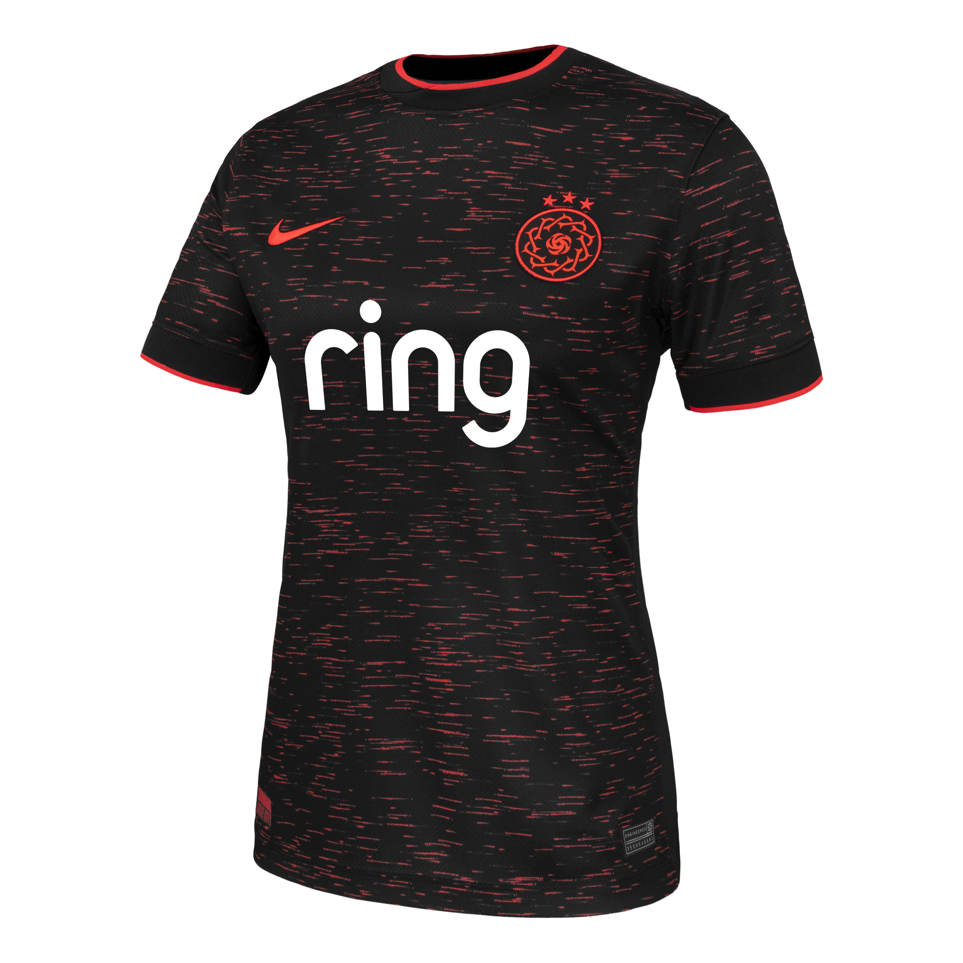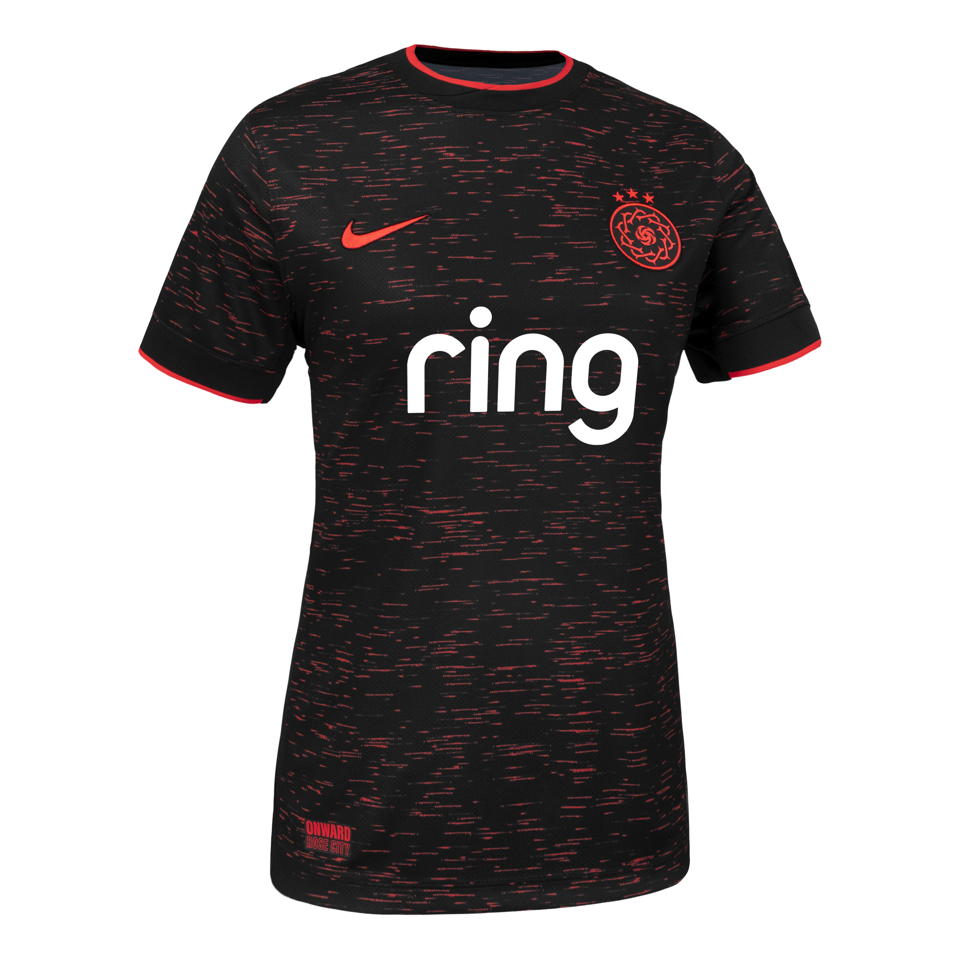 The Thorns secondary kit is a celebration of the heart and soul of Portland—the community that drives the Thorns. The dark shades of black symbolize the strength and unity within our city, while the glowing reds represent the embers burning at the heart of our team and supporters. Just like a small spark can grow into an unstoppable fire, the Thorns are powered by the passion of our players and fans alike. Portland Thorns FC Secondary jersey: inspired by Community, Fueled by Passion